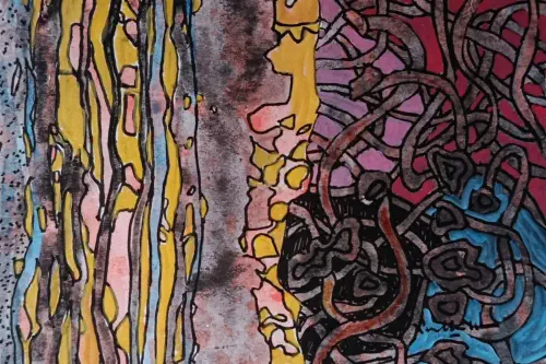 sense of vertical movement and depth. The textures evoke something
