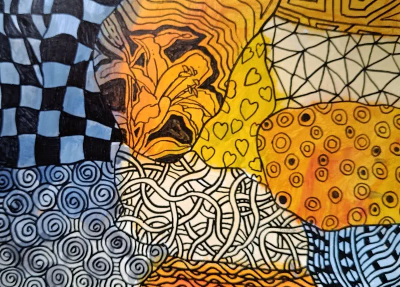 playful, almost childlike touch, balancing the denser linear patterns.