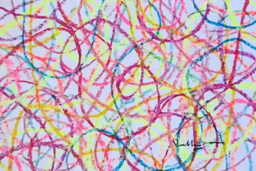 spontaneity. The overlapping arcs form a rhythmic field of movement,