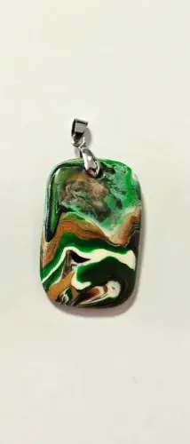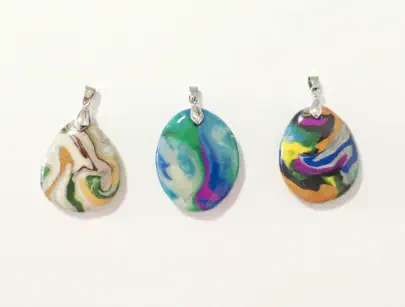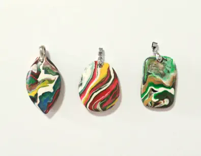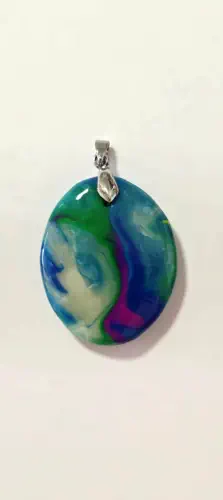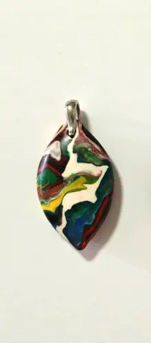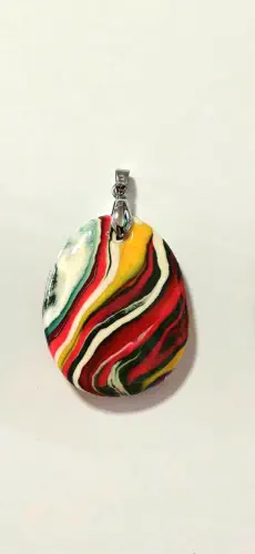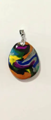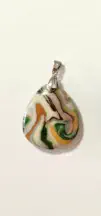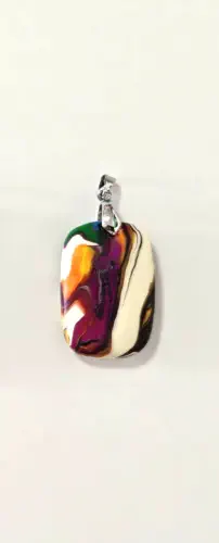 这枚多色流纹吊饰中,紫、橙、绿与米白自由交