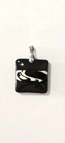 一枚极简黑白吊饰,深黑底上有一道轻柔的白色流