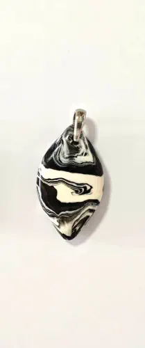 这枚叶形吊饰以黑与米白交融,形成自然的纹理流