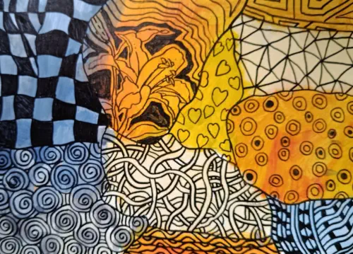 Each section of the canvas is filled with a different motif: