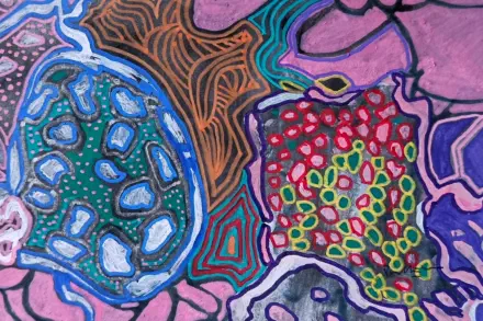 like shapes, layered over darker tones, evoking fruit clusters or mineral