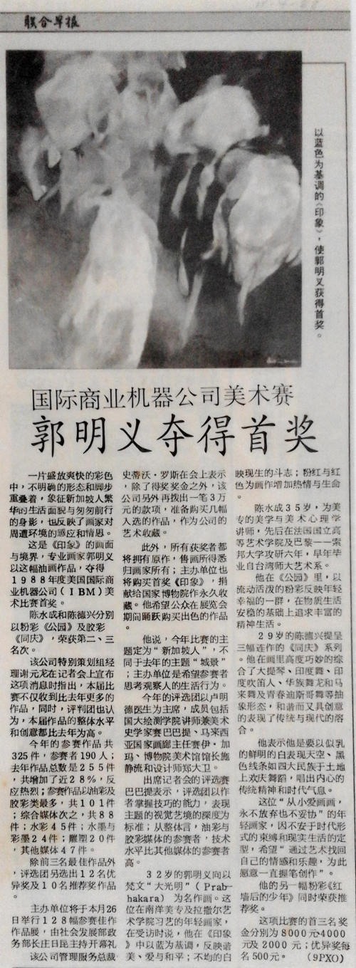 1988 Awarded First Prize IBM Art Award 1988 (Title of Work: