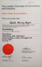 1977 Awarded Higher Stage Group Diploma in Marketing